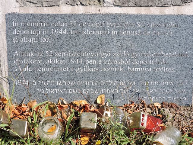 52 de pietre funerare în memoria copiilor uciși la Auschwitz, în Parcul Memorial al Evreilor din Sfântu Gheorghe
