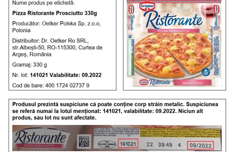 Dr Oetker confirmă că DOAR produsul și lotul acesta sunt afectate.