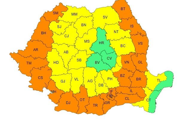 ANM A EMIS DOUĂ CODURI PORTOCALII PENTRU URMĂTOARELE ZILE