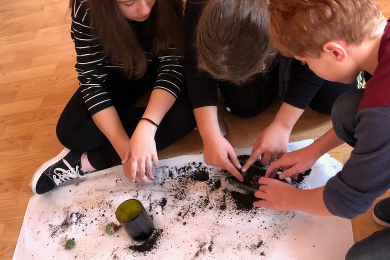 - sacoșe de plastic, cutii de carton, bucăți de lemn, jucării stricate sau haine vechi. Pe durata acestor ateliere, elevii au discutat despre consumul responsabil, dezvoltare locală durabilă și eficientizarea resurselor, participând la primul lor protest