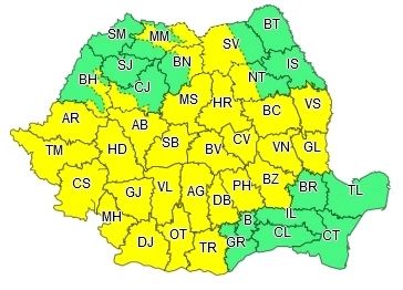 În intervalul menționat, în Banat, Oltenia, local în Crișana, Transilvania, Muntenia, în sudul și centrul Moldovei, precum și în zonele de munte vor fi perioade cu averse torențiale, descărcări electrice, intensificări ale vântului și izolat grindină și vijelii. În intervale scurte de timp sau prin acumulare, cantitățile de apă vor depăși 25...30 l/mp și izolat 40...50 l/mp.