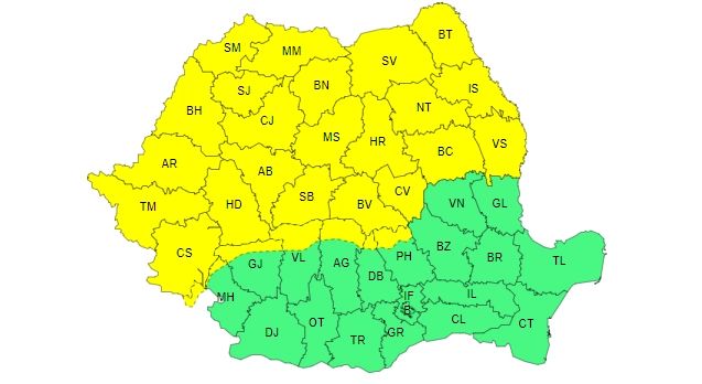 ATENȚIONARE METEOROLOGICĂ - COD GALBEN