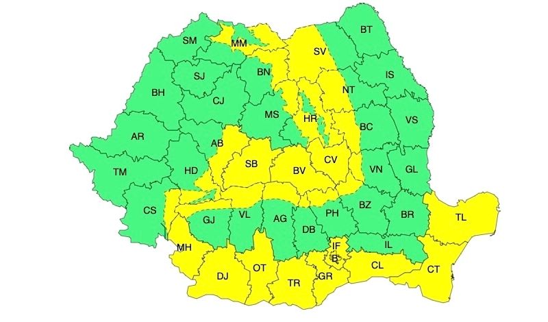 Zone afectate și fenomene vizate: viscol foarte puternic la altitudini de peste 1700 m în județele Caraș-Severin, Hunedoara, Alba, Sibiu, Brașov, Argeș și Dâmbovița