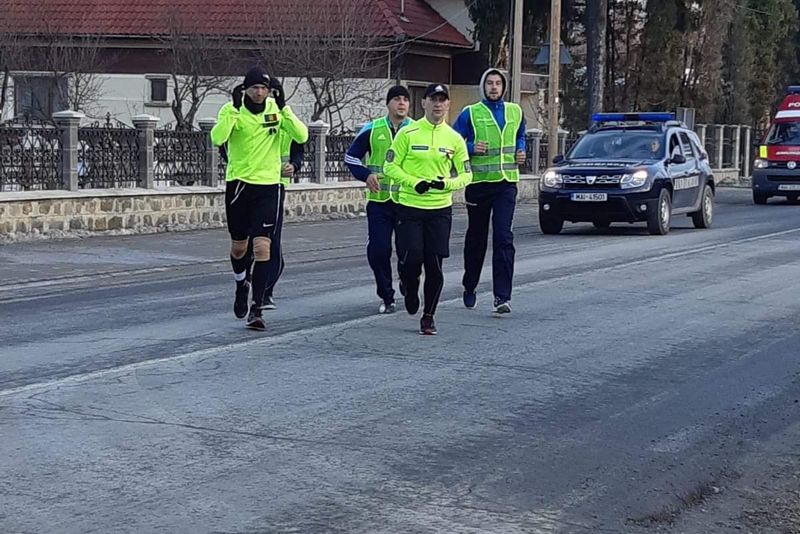 În cadrul acestui proiect, cei doi participanți refac prin alergare, în cele 15 zile, traseul dorobanţilor Regimentului 11 Dorobanţi "Siret" Galaţi, la 100 de ani de la Marea Unire, parcurgând Garnizoanele Focşani, Buzău, Covasna, Braşov, Făgăraş, Sibiu şi Alba Iulia.“În zona localității Crasna au fost întâmpinați de jandarmi covăsneni, care i-au însoți pe traseul până în orașul Întorsura Buzăului, unde au poposit în această seară. Trei jandarmi din cadrul Detașamentului 3 Târgu Secuiesc li s-au alăturat, alergând împreună. Pe parcursul acestui traseu au fost primiți de către primarii din Întorsura Buzăului și Sita Buzăului, care le-au adresat felicitări pentru implicarea și efortul depus în cadrul acestui proiect”, transmit reprezentanții IJJ Covasna, potrivit cărora participanții au alergat vineri 46 de km, pe traseul Nehoiu – Întorsura Buzăului.Sursa foto: IJJ Covasna