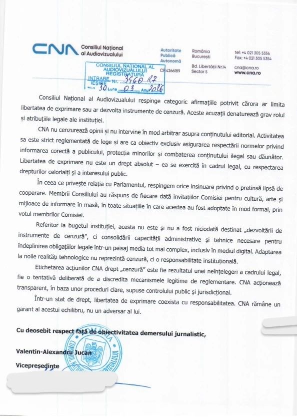 Aceasta nu este prima tentativă a Comisiei de Cultură de a trage la răspundere autoritatea audiovizuală. O convocare similară a avut loc în urmă cu doar câteva zile, moment în care CNA a reacționat printr-o poziție oficială fermă. Instituția a respins atunci orice acuzație privind o eventuală lipsă de transparență sau refuz de cooperare cu forul legislativ.