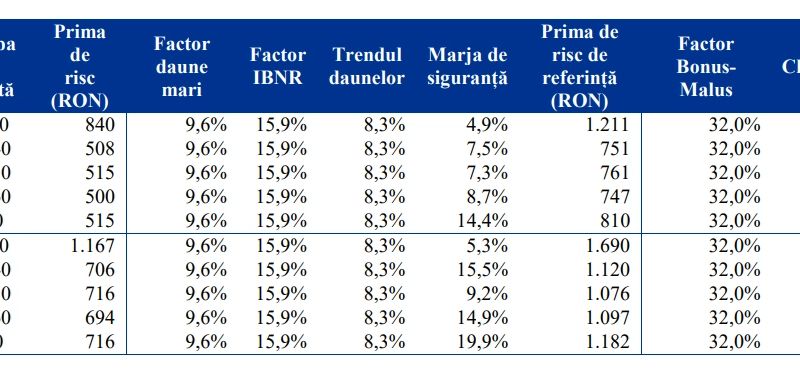 Pentru persoanele fizice, autoritățile propun ca tariful maxim să fie plafonat la nivelul tarifului de referință, pentru clasa de bonus/malus B0.